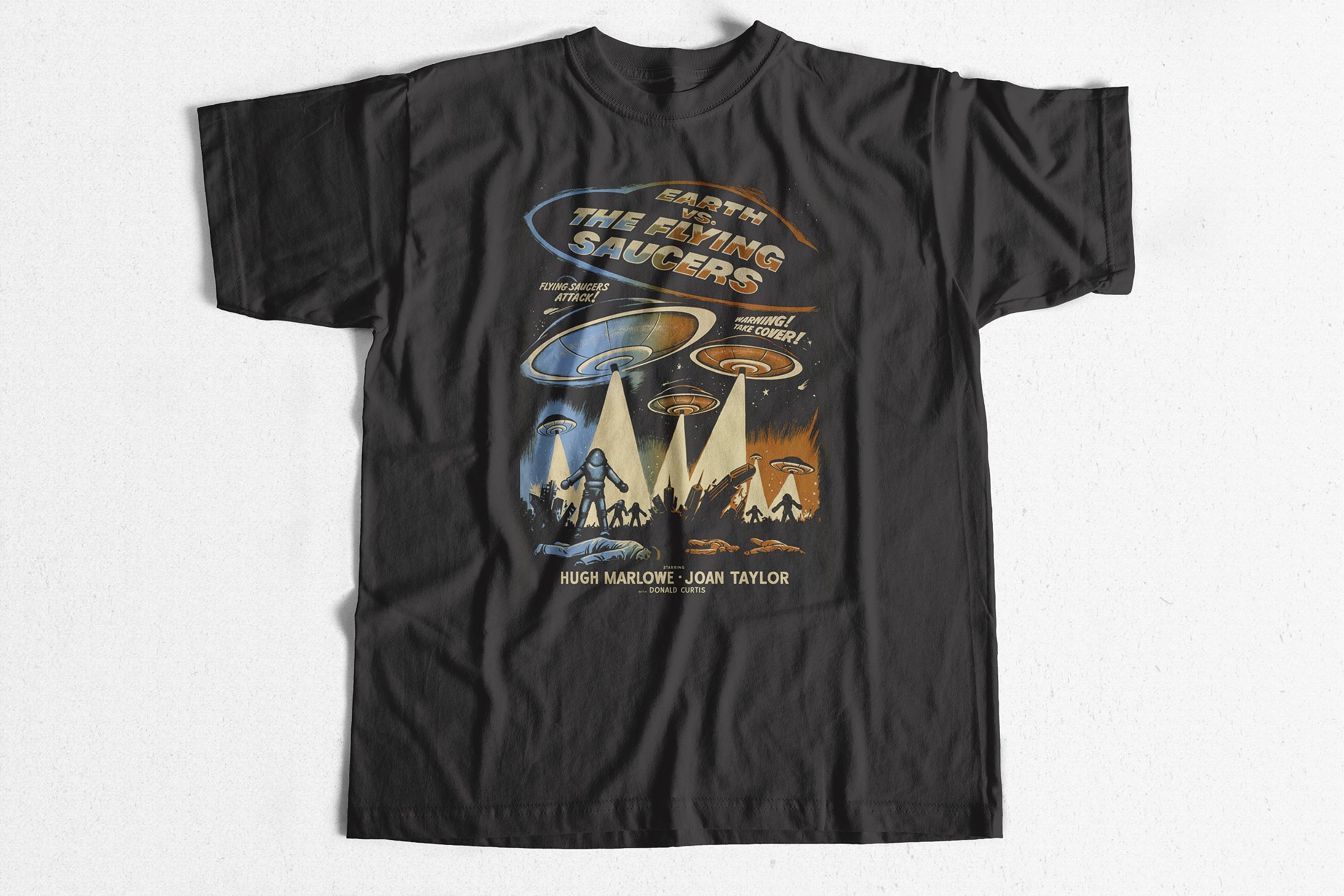 Se você é um fã deste clássico da ficção científica e deseja demonstrar seu amor por "A Terra Contra os Discos Voadores", considere adquirir uma camiseta temática. Nossas camisetas são feitas em malha penteada,100% algodão, fio 30.1, com costura reforçada e acabamento em viés ombro a ombro, garantindo durabilidade e qualidade superior. Ao vestir essa camiseta, você não apenas homenageará um dos filmes mais emocionantes da era das invasões alienígenas, mas também se conectará com outros fãs que compartilham sua apreciação pela coragem e pela imaginação de Ray Harryhausen.