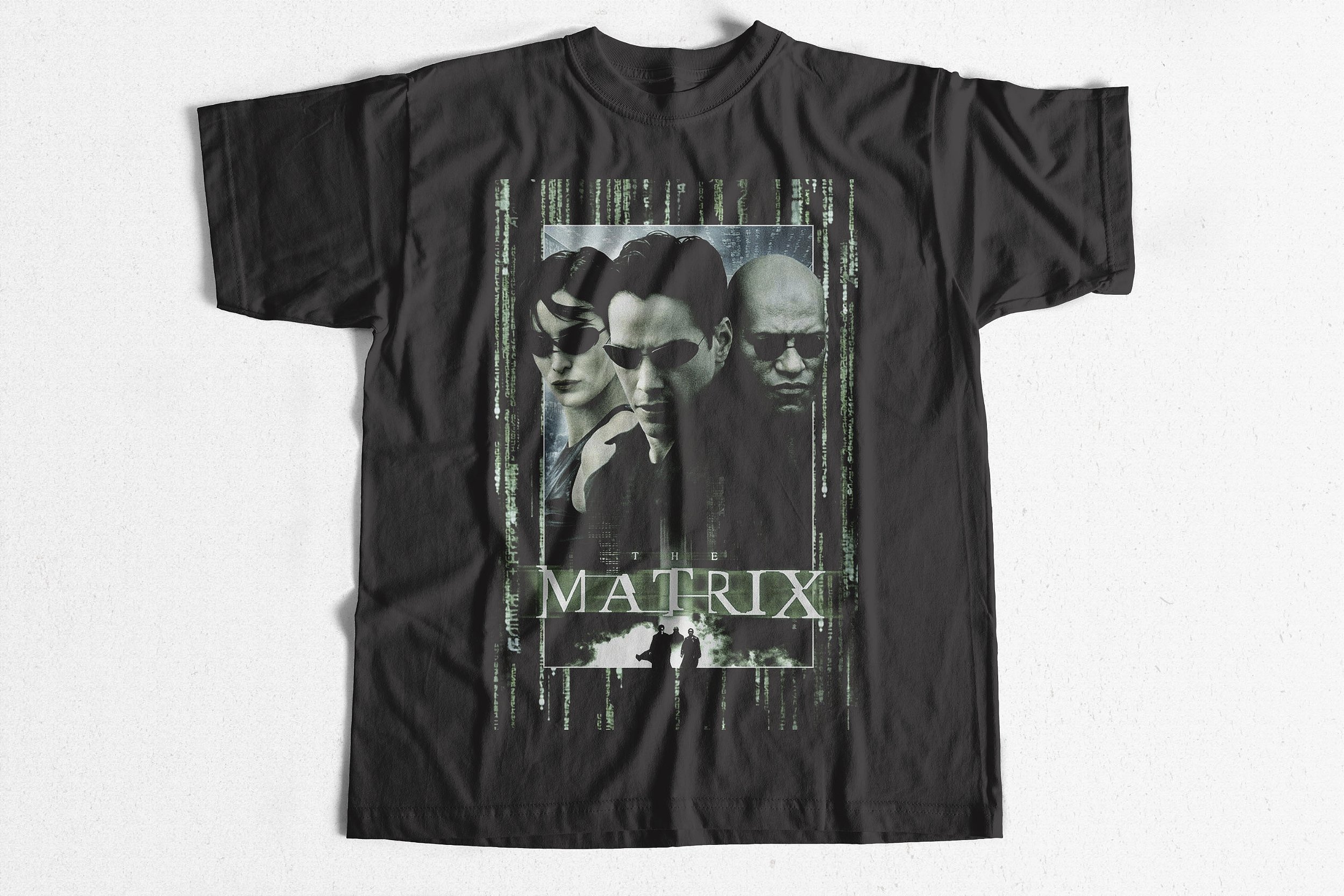 A camiseta homenageia esse marco da ficção científica moderna, com arte inspirada no código digital verde, nas artes marciais e na estética cyberpunk do filme. A estampa é feita em Silk Digital HD, aplicada sobre malha 100% algodão fio 30.1 penteada, garantindo conforto, durabilidade e um visual icônico para fãs de cinema, tecnologia e filosofia futurista.